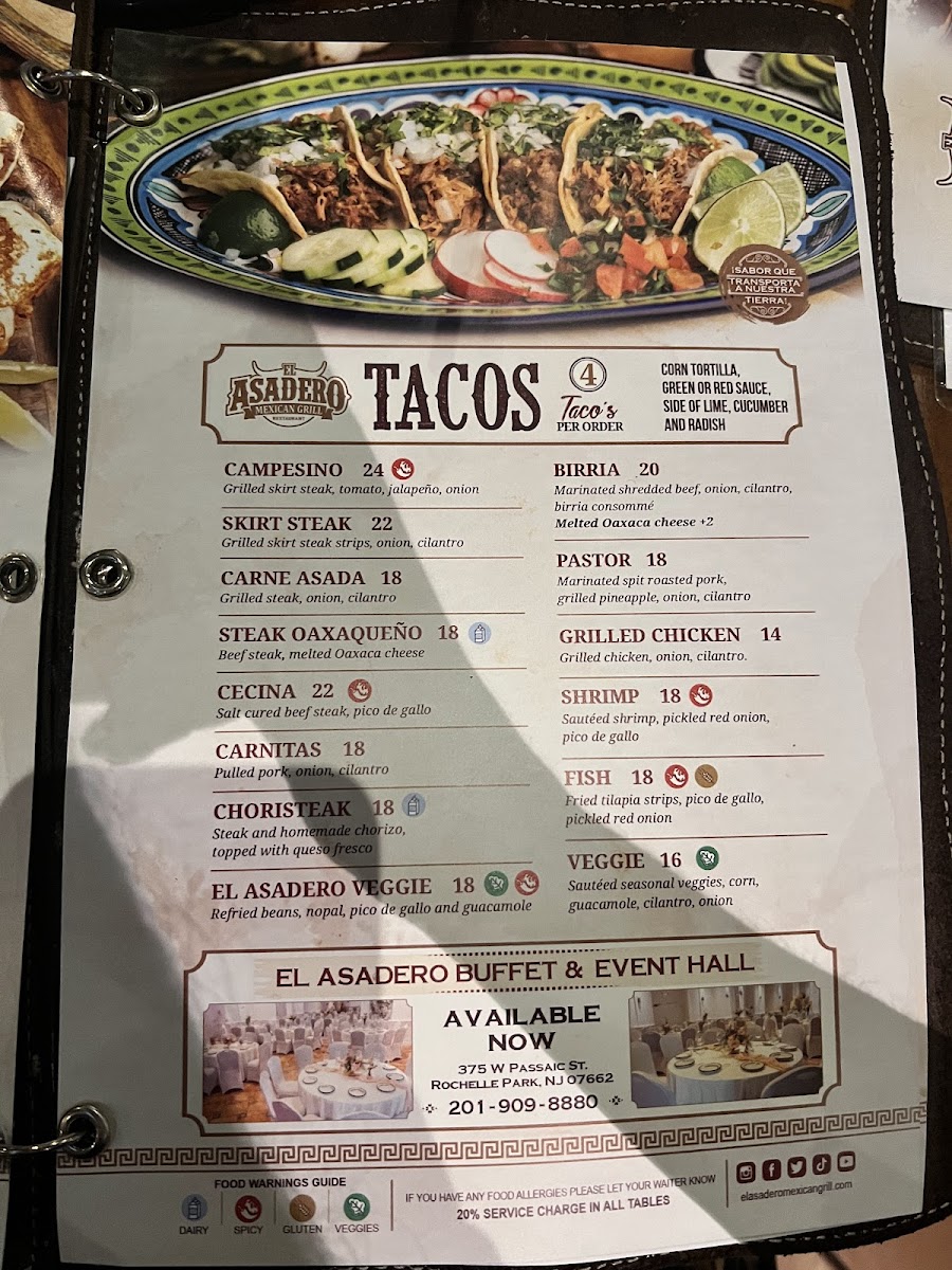 If you’re craving authentic Mexican flavors, look no further than El Asadero Mexican Grill Rochelle Park Menu. Nestled in the heart of Rochelle Park, NJ, this cozy spot at 375 W Passaic St serves up a delightful array of dishes that will transport your taste buds straight to Mexico. Whether you’re in the mood for sizzling fajitas, juicy tacos, or hearty burritos, there’s something to satisfy every craving. Don’t forget to try their signature grilled meats, marinated to perfection and bursting with flavor.